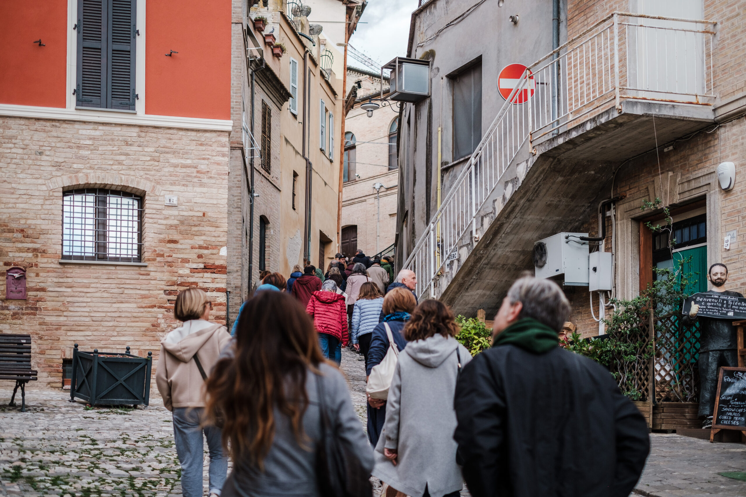 Del resto BiennaleOFF era una iniziativa che voleva coinvolgere l’intera città e mostrare Tolentino attraverso uno dei suoi pilastri culturali: l’umorismo, un appuntamento della 33a edizione della Biennale Internazionale dell’Umorismo nell’Arte con eventi che ruotavano attorno alla Mostra sui 50 anni del Premio Mari, dedicato dal 1975 alla caricatura. Una manifestazione viva e partecipata che prevedeva l’apertura gratuita del Castello della Rancia e del Miumor a Palazzo Sangallo ma anche incontri, spettacoli, visite guidate e grazie alla preziosa collaborazione con la Confartigianato, una speciale edizione di AperiGusto.