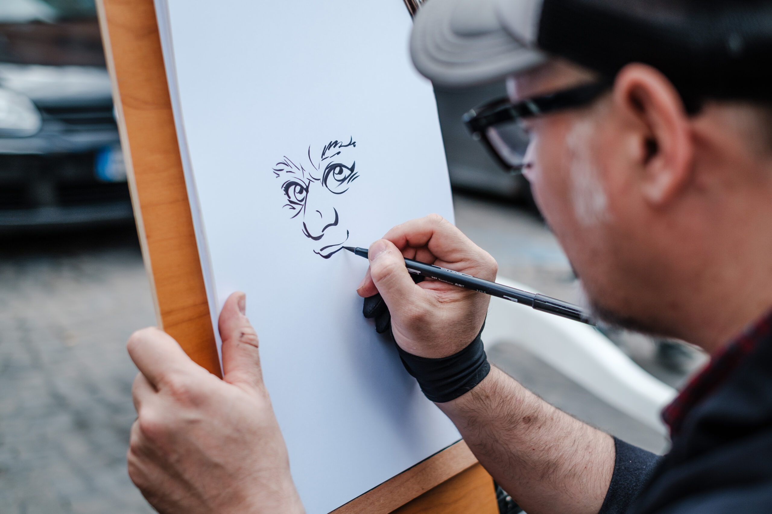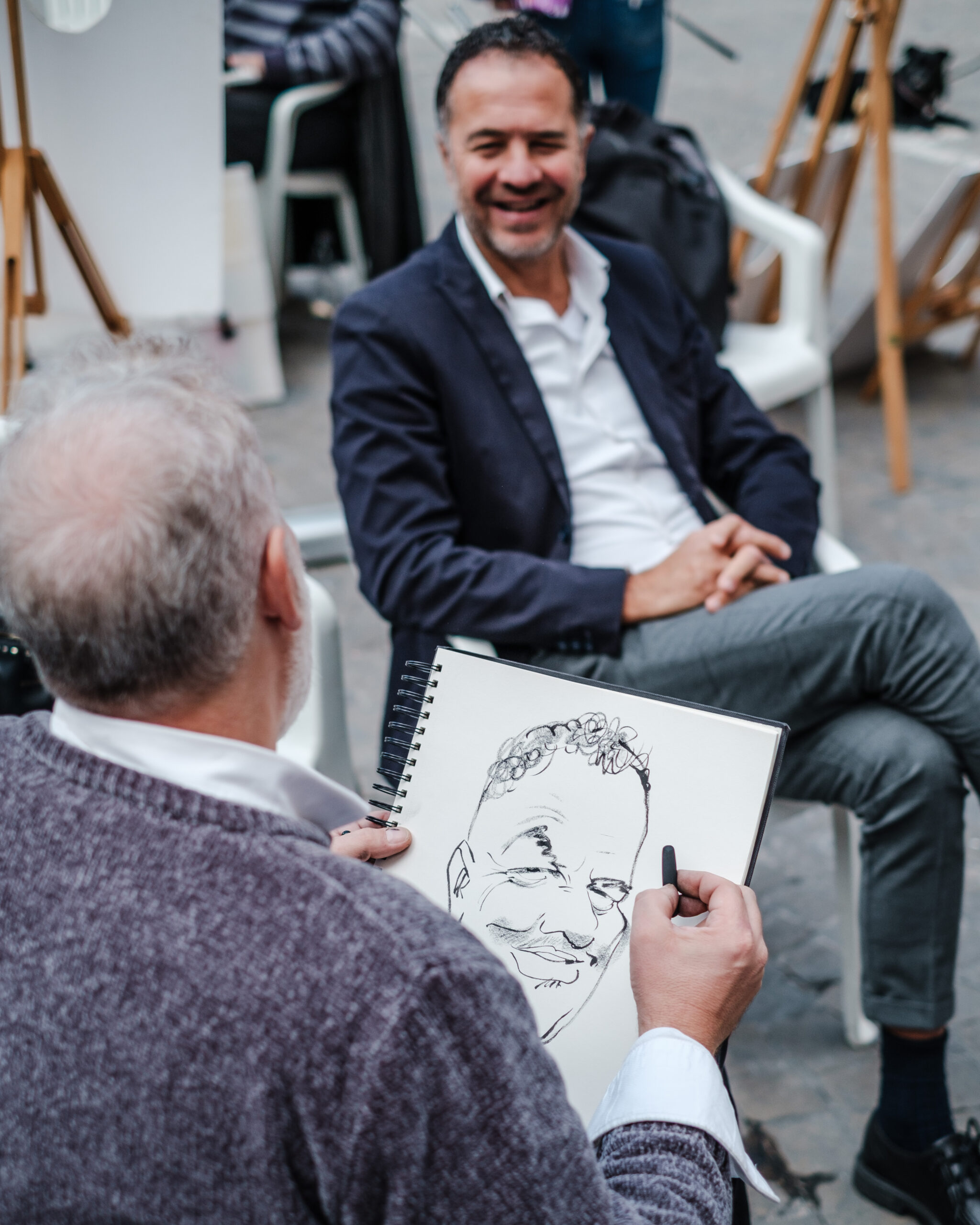 Contemporaneamente in Piazza della Libertà tantissime persone si sono divertite con “CaricaturaLive”. Biennale OFF ha regalato un sorriso. quattro caricaturisti sono stati a disposizione dei cittadini e turisti per un curioso e particolare ritratto. Infatti Marco Martellini, Federico Cecchin, Angelo Ciaramella, Marzio Mariani, in via del tutto eccezionale, hanno donato la propria caricatura a chiunque ha avuto il coraggio di sedersi davanti a loro per farsi ritrarre. Per tre ore tantissime persone, di tutte le età, sono rimaste in fila per avere il proprio disegno.