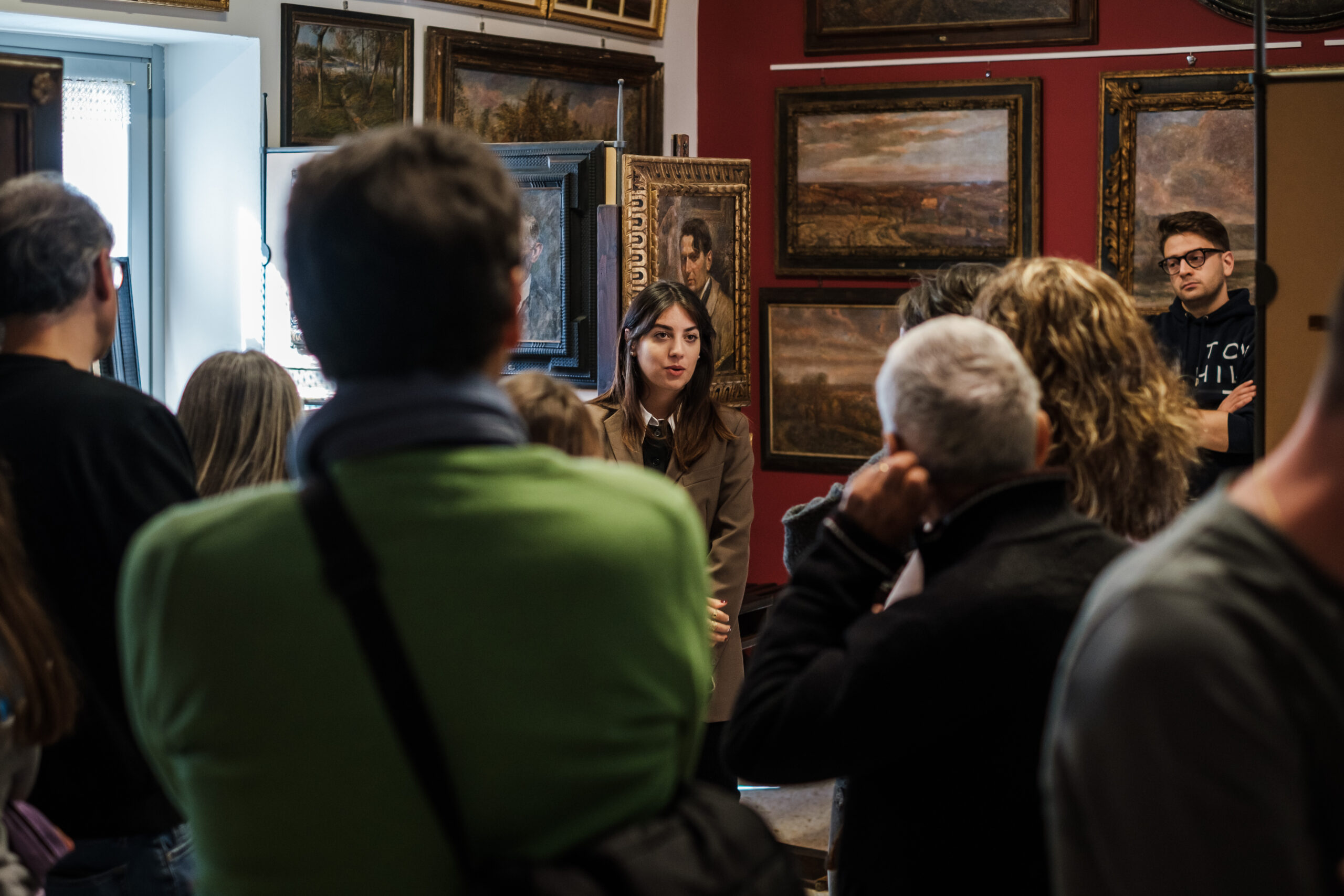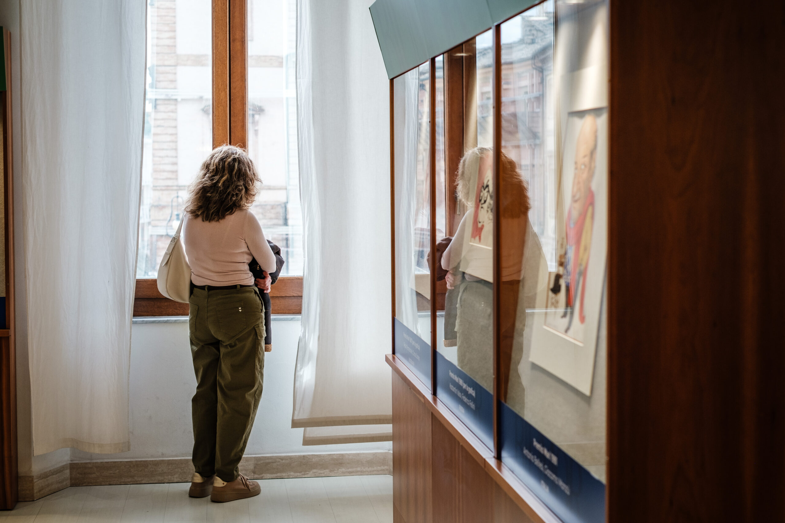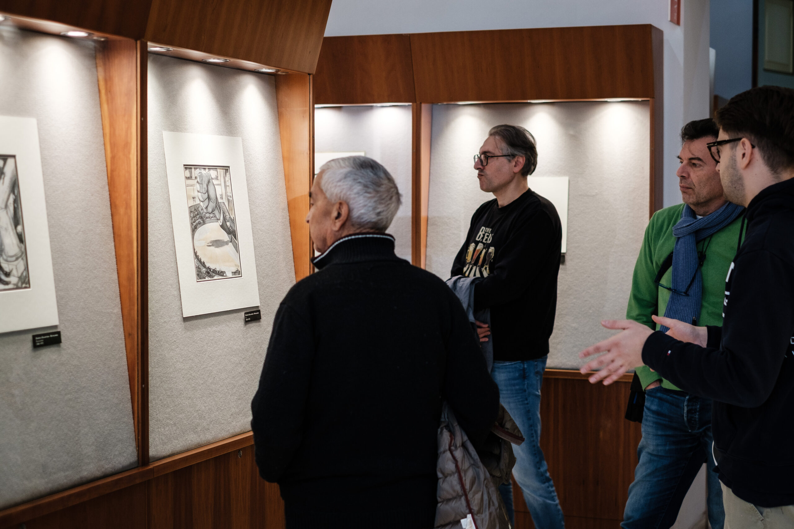 Domenica 26 ottobre, le visite guidate a Casa Marcorelli e al MIUMOR, curate dall’associazione Zagreus, hanno raccontato le origini di BIUMOR a Tolentino. La vicenda biografica e artistica di Cesare Marcorelli, pittore e caricaturista a cavallo tra Ottocento e Novecento, e il patrimonio intatto delle sue opere, conservato integro dai suoi eredi tra le pareti che lui stesso ha vissuto, si sono intrecciati con l’esposizione permanente del MIUMOR e con la mostra allestita in occasione della Biennale 2025 a 50 anni dalla nascita del Premio Mari alla caricatura, dedicato nel 1975 a un anno dalla scomparsa del mitico fondatore. Le visite, che hanno visto tutti i turni sold-out, hanno permesso al pubblico di riscoprire i luoghi che hanno fatto e fanno la storia di Tolentino.