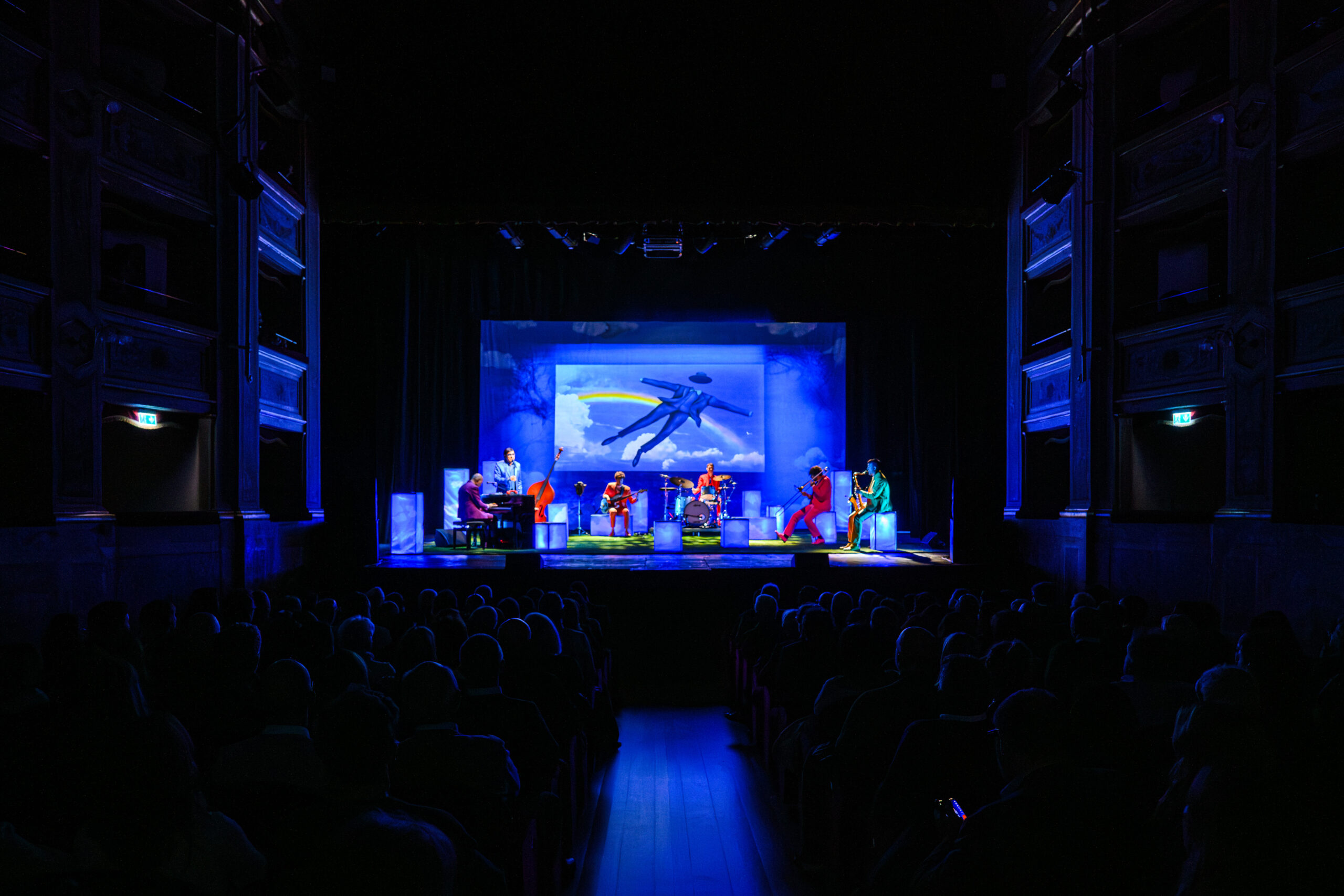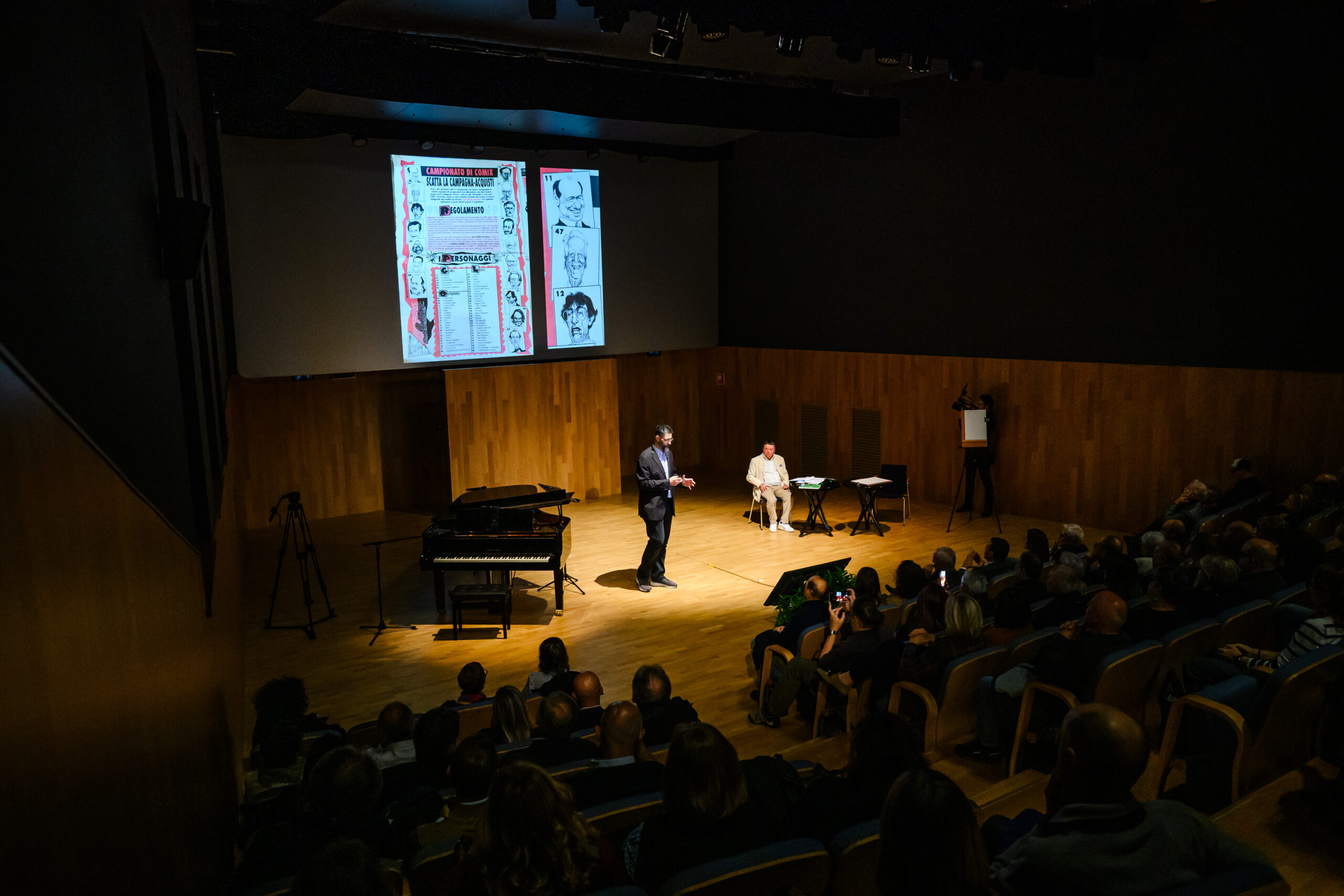 Al Teatro Nicola Vaccaj, lo sguardo ironico, divertito e divertente di Stefano “Elio” Belisari che, a chiusura di Biennale OFF, ha riletto e interpretato, con uno straordinario gruppo di musicisti, il repertorio di Gaber, Fo, Iannacci, Cochi e Renato nello spettacolo “Quando un musicista ride” che è ripartito da Tolentino per il nuovo tour, Un vero e proprio omaggio alla comicità musicale italiana degli anni ’60, reinterpretata con ironia e libertà da Elio che ha richiamato perfettamente il tema della comicità involontaria della Biennale 2025.